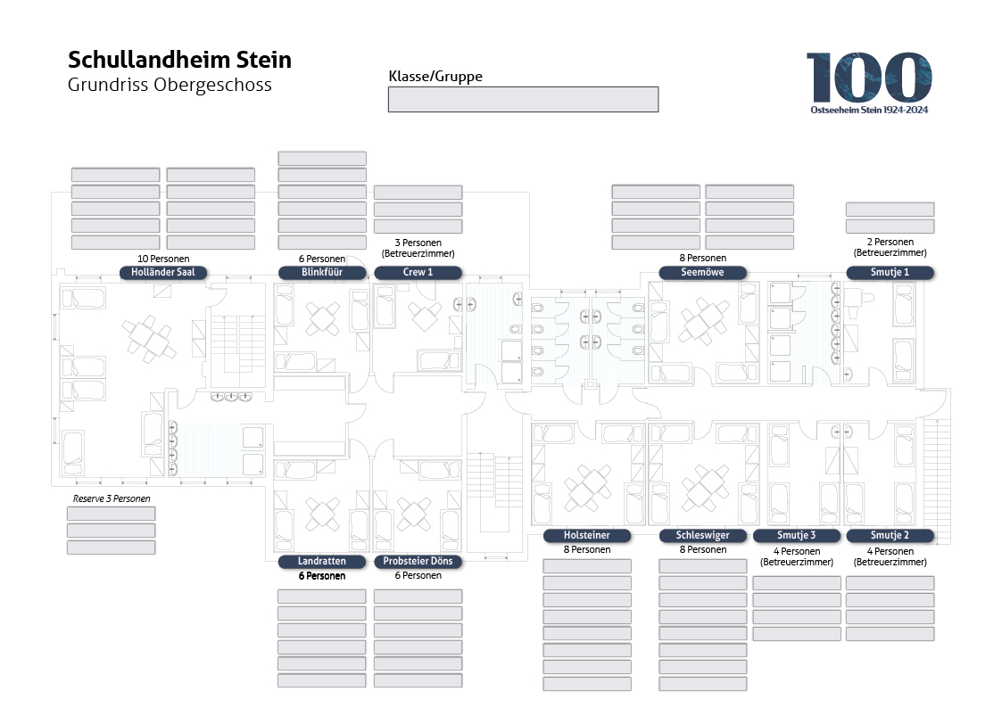 Optimal planen um am Anreisetag das Chaos klein zu halten! Sehen Sie unsere Grundrisse des Schullandheims. Sie können die Pläne als PDF herunterladen und mit Ihrer Gruppe entsprechend ausfüllen.